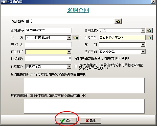 打開采購合同,左側(cè)選擇相應(yīng)的項(xiàng)目,右邊點(diǎn)新建,錄入采購合同相關(guān)信息,保存。