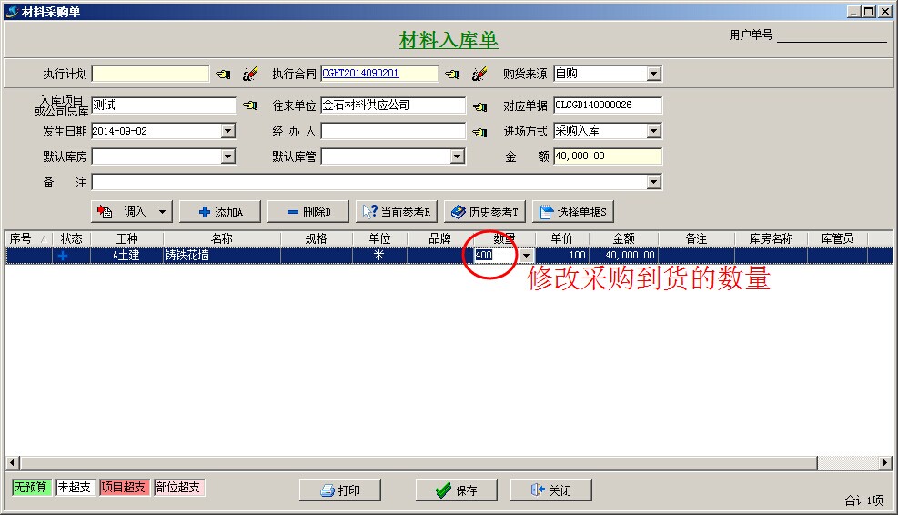 注:以上完成了材料到貨驗(yàn)收40000元。