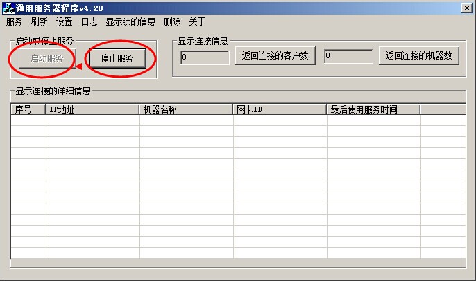 ,彈出通用服務器程序窗口,先點停止服務,然后點啟動服務(參照下圖)