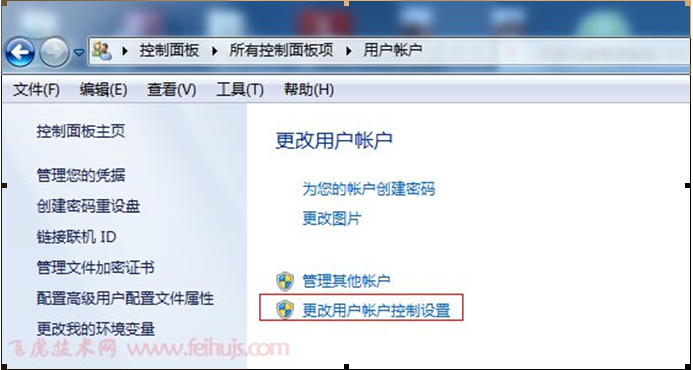 在彈出用戶賬戶界面,選擇更改用戶賬戶控制設(shè)置,如下圖: