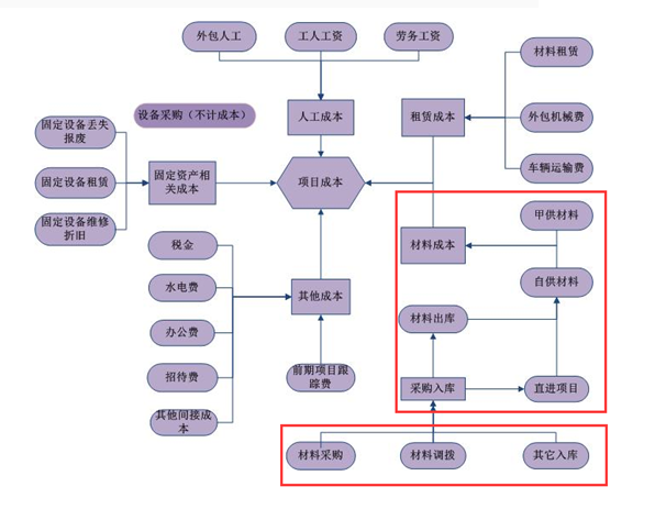 材料成本,可分為自購材料、甲供材料兩大類(其中甲供材料根據項目實際情況可選擇是否要納入統計)。