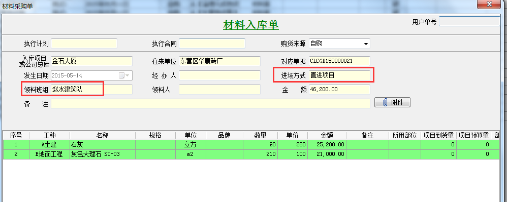 軟件中實(shí)際用量匯總是通過(guò)材料管理中材料采購(gòu)單、材料出庫(kù)單、材料退庫(kù)單、材料調(diào)撥單中領(lǐng)料班組為當(dāng)前合同乙方,項(xiàng)目為當(dāng)前項(xiàng)目進(jìn)行計(jì)算。如下圖: