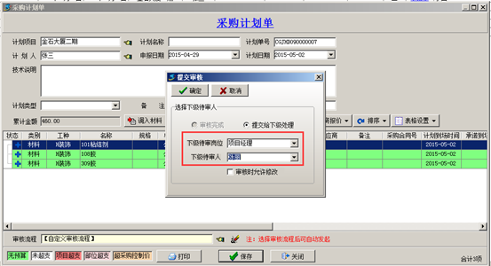 單據的創建人在發起審核的時候選擇“自定義審核”,確定之后選擇下一級審核人,如圖;