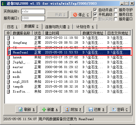 還原完成后可在數據庫中看到還原的數據庫,如圖: