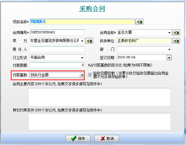 項(xiàng)目付款總控制(付款控制)即付款按執(zhí)行金額來付款。