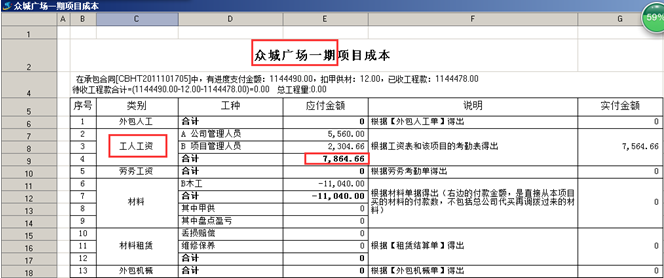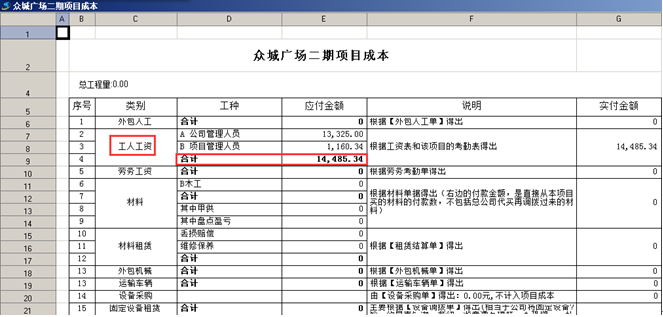 “眾城廣場二期”項目成本-“工人工資”,如圖:
