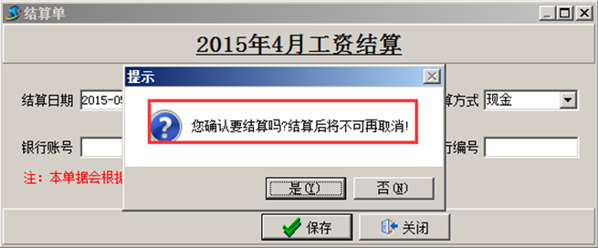 注:工資發放單整單結算之后不可再取消。
