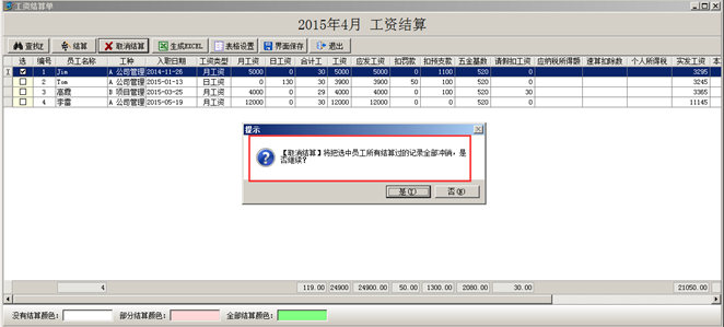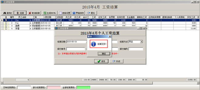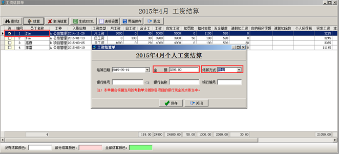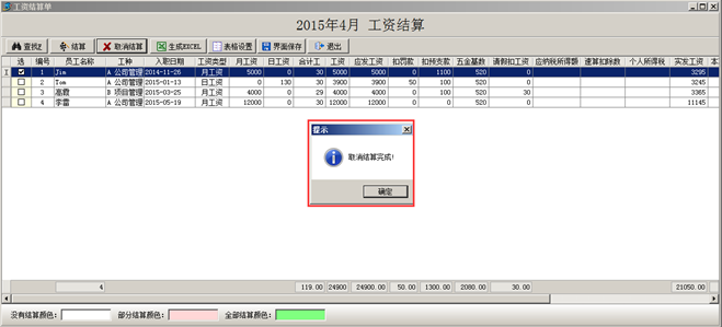 注:如果員工的工資只做了部分結算,則會顯示對應的“部分結算”的顏色。