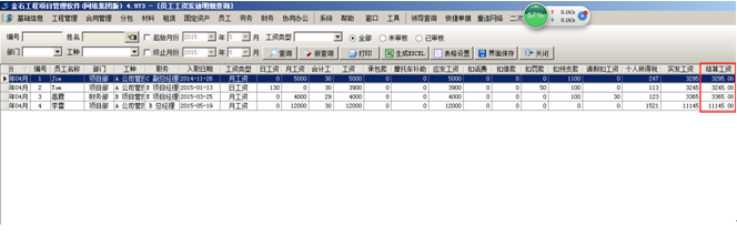 結算完成之后工程管理軟件中可查詢工資流水,并可查詢分攤到各項目中的成本。