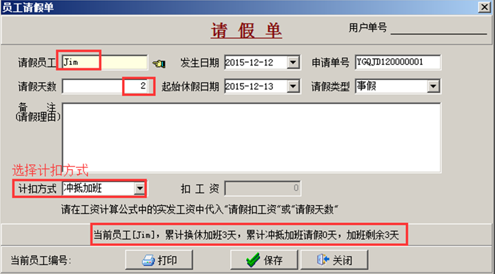工程管理軟件中員工管理中員工加班、請假抵扣的操作方法