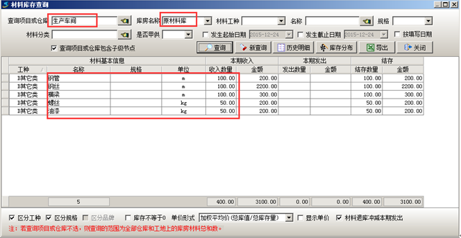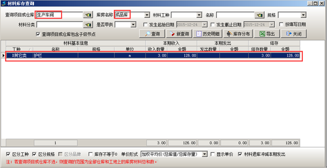 材料采購(gòu)?fù)瓿芍罂稍趯?duì)應(yīng)的材料庫(kù)中查到相應(yīng)的庫(kù)存,如圖: