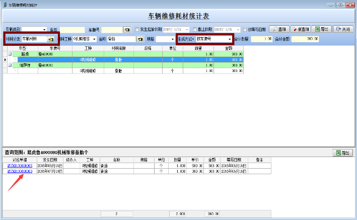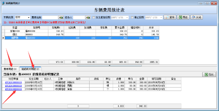 可根據(jù)生成方式進(jìn)行匯總 包括(以車牌號(hào)匯總和以材料名稱匯總)
