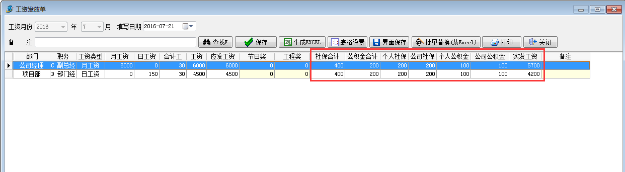 1. 首先在工程項目管理系統員工維護填寫好個人社保,公司社保,個人公積金,公司公積金相應的金額。如下圖: