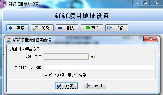 點(diǎn)擊新增選擇對(duì)應(yīng)的項(xiàng)目名稱和填寫對(duì)應(yīng)的釘釘?shù)刂逢P(guān)鍵字。如果有多個(gè)關(guān)鍵字用分號(hào)分開(kāi)。