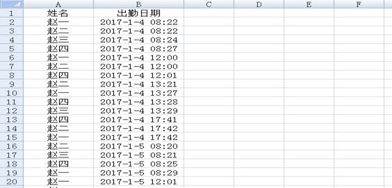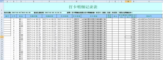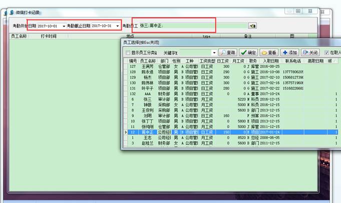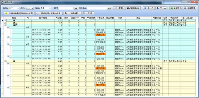 選擇好時(shí)間段,和考勤員工后,點(diǎn)擊查詢按鈕,出現(xiàn)如下圖所示