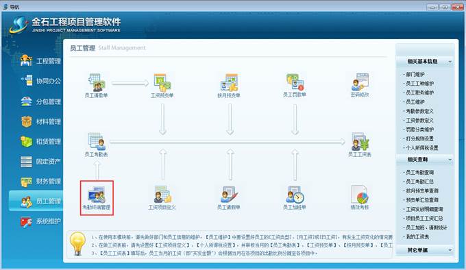 以上操作可參見(jiàn)教學(xué)視頻“金石工程項(xiàng)目管理軟件考勤管理 ”。