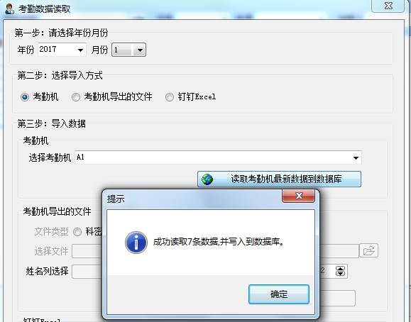 選擇好對(duì)應(yīng)公司或者項(xiàng)目的考勤機(jī),點(diǎn)擊讀取考勤機(jī)最新數(shù)據(jù)到數(shù)據(jù)庫(kù)。操作完成會(huì)提示成功讀取了多少條數(shù)據(jù),并寫入到數(shù)據(jù)庫(kù)。如下圖: