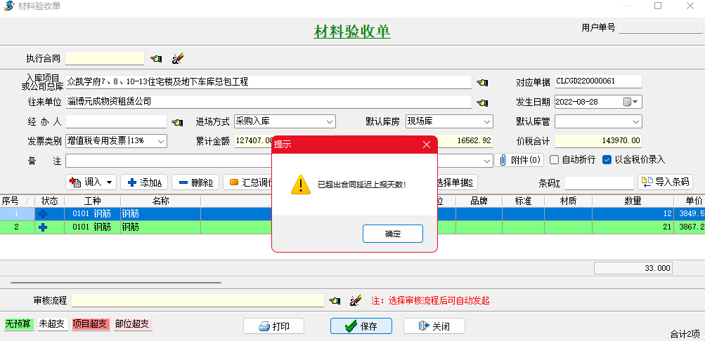 為了控制單據(jù)延遲上報時間,金石工程項目管理軟件專門開發(fā)了機械日報單、材料采購單、外包機械單、其它費用單、外包人工單、采購變更單、分包變更單、租賃變更單、其它變更單、銷售變更單等單據(jù)延遲上報天數(shù)設(shè)置。也就是企業(yè)可以自定義單據(jù)延遲上報天數(shù),單據(jù)發(fā)生日期超出上報天數(shù)時不允許保存。