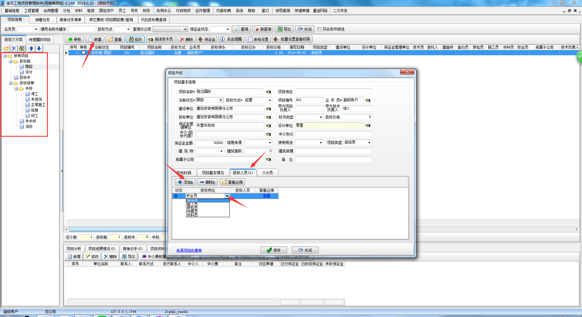 新建投標項目時,選好分類,填好投標項目基礎(chǔ)信息,依次添加投標人員,如下圖:
