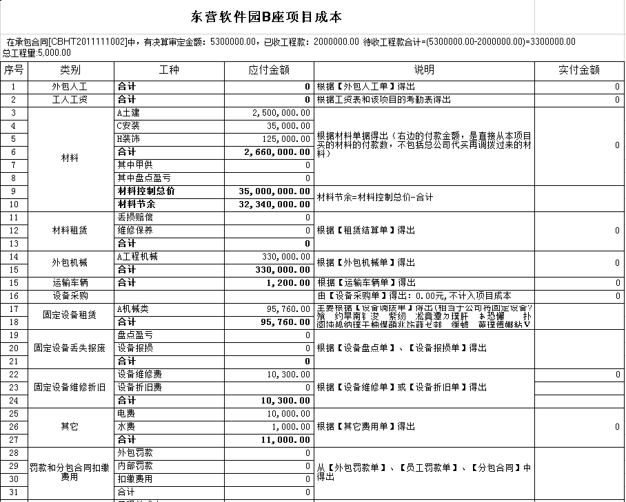 工程管理成本統計(成本、利潤、產值)