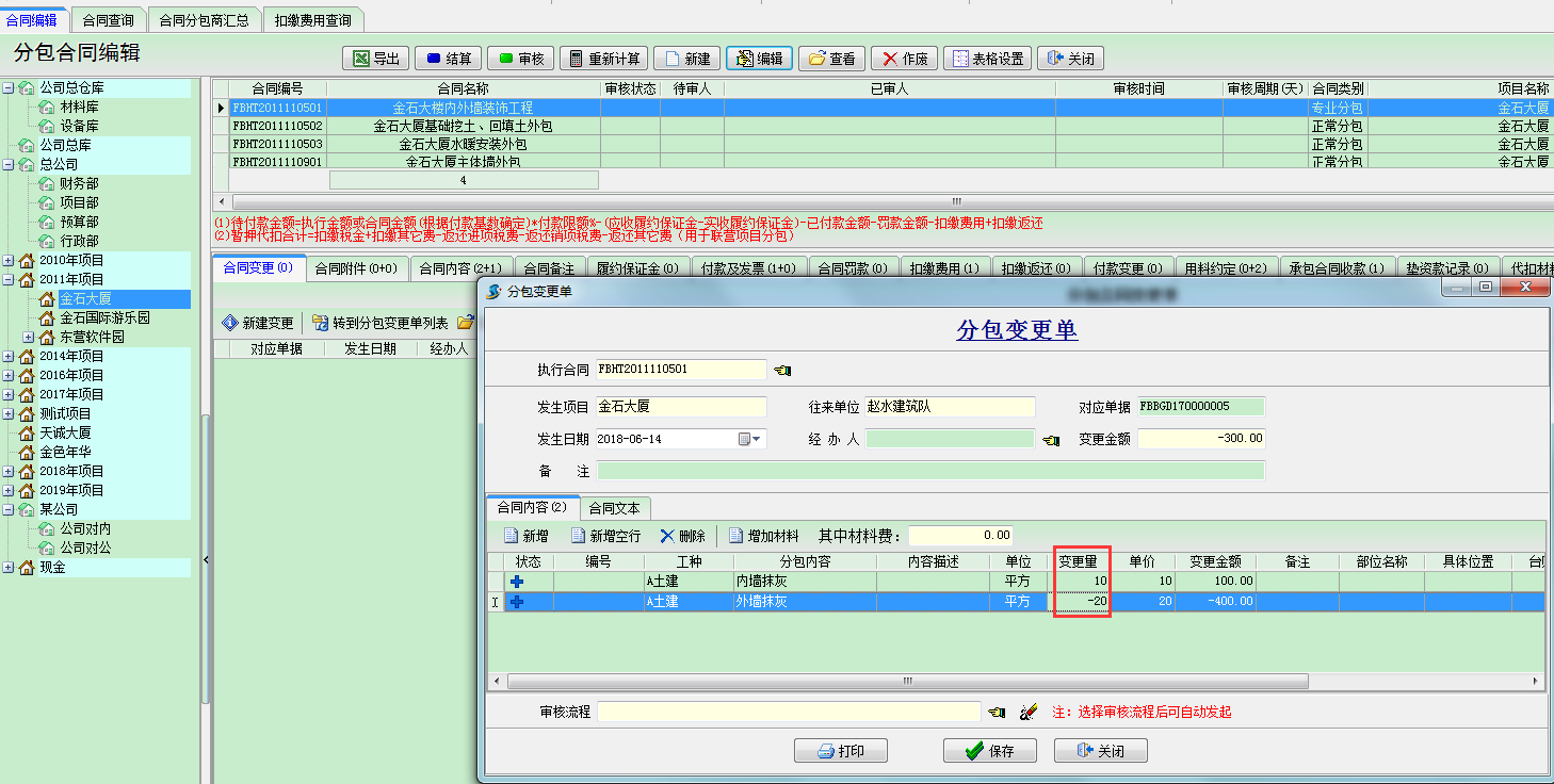 如遇到合同變更或者分包簽證的情況,就會用到【分包變更單】,如下圖