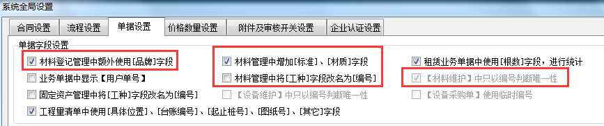 1、單據(jù)字段,比如開(kāi)啟品牌,標(biāo)準(zhǔn)和材質(zhì)的字段,工種字段改為編號(hào),還有編號(hào)為材料的判斷標(biāo)準(zhǔn)。