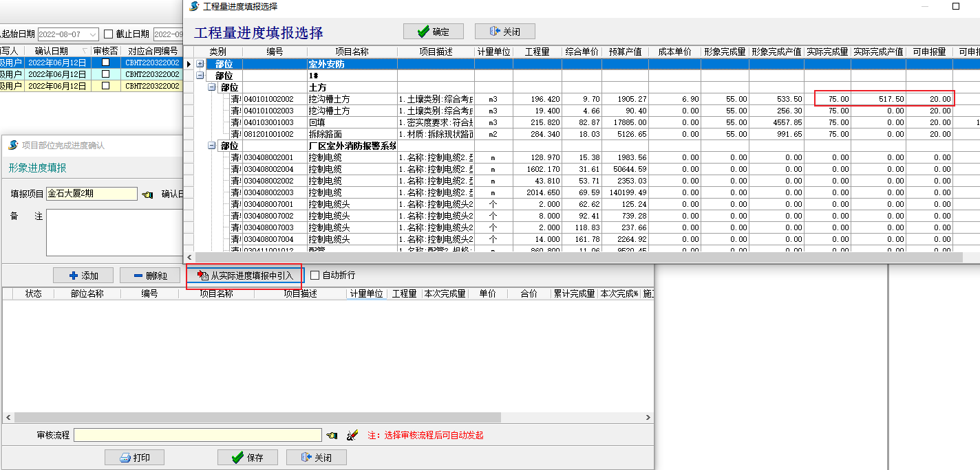 金石工程管理軟件新增形象進度金額、實際進度金額功能