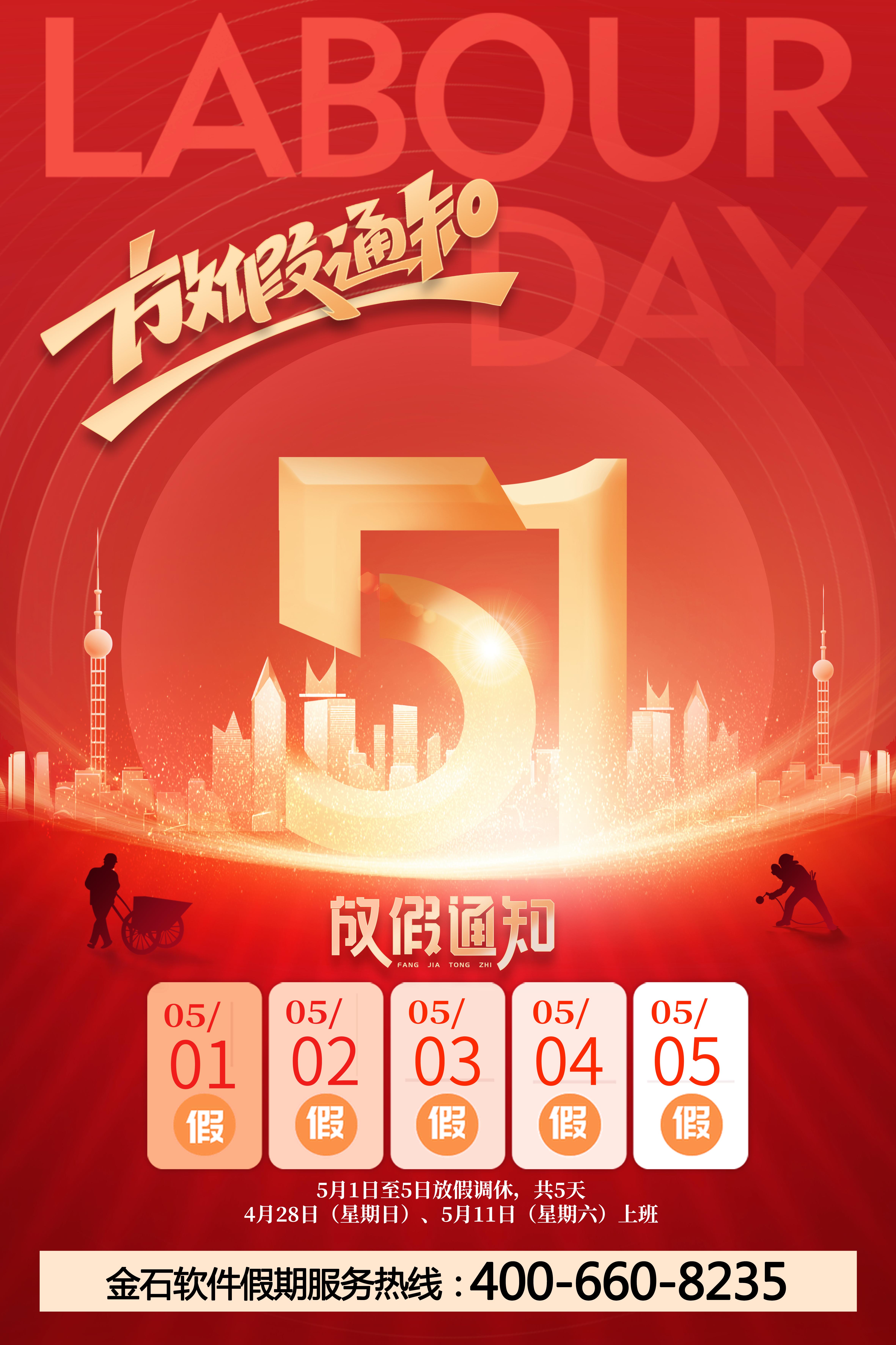 為響應(yīng)國家放假辦相關(guān)號召,金石軟件定于2024.5.1-5.5日放假,假期400-660-8235正常接通,如有需要,歡迎致電。