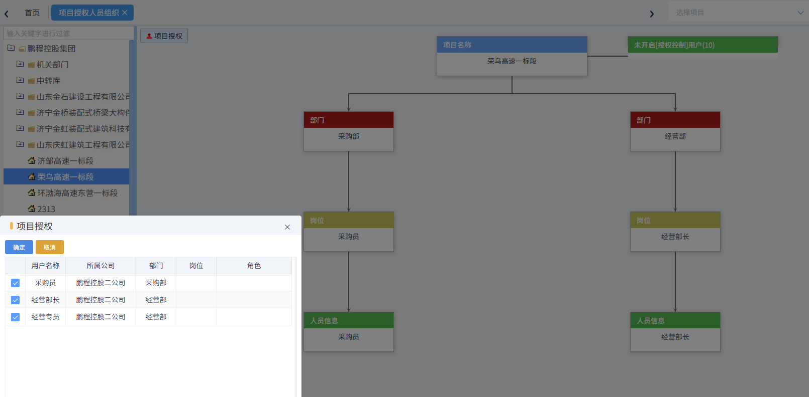 項目授權人員組織,主要是查看當前項目授權人員的組織架構,如下圖所示: