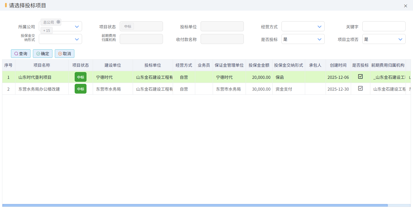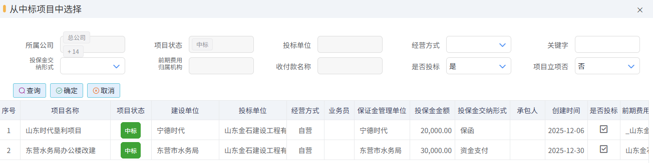 從中標項目中選擇,會彈出中標項目選擇框,如下圖所示: