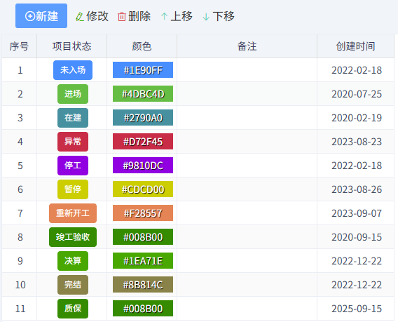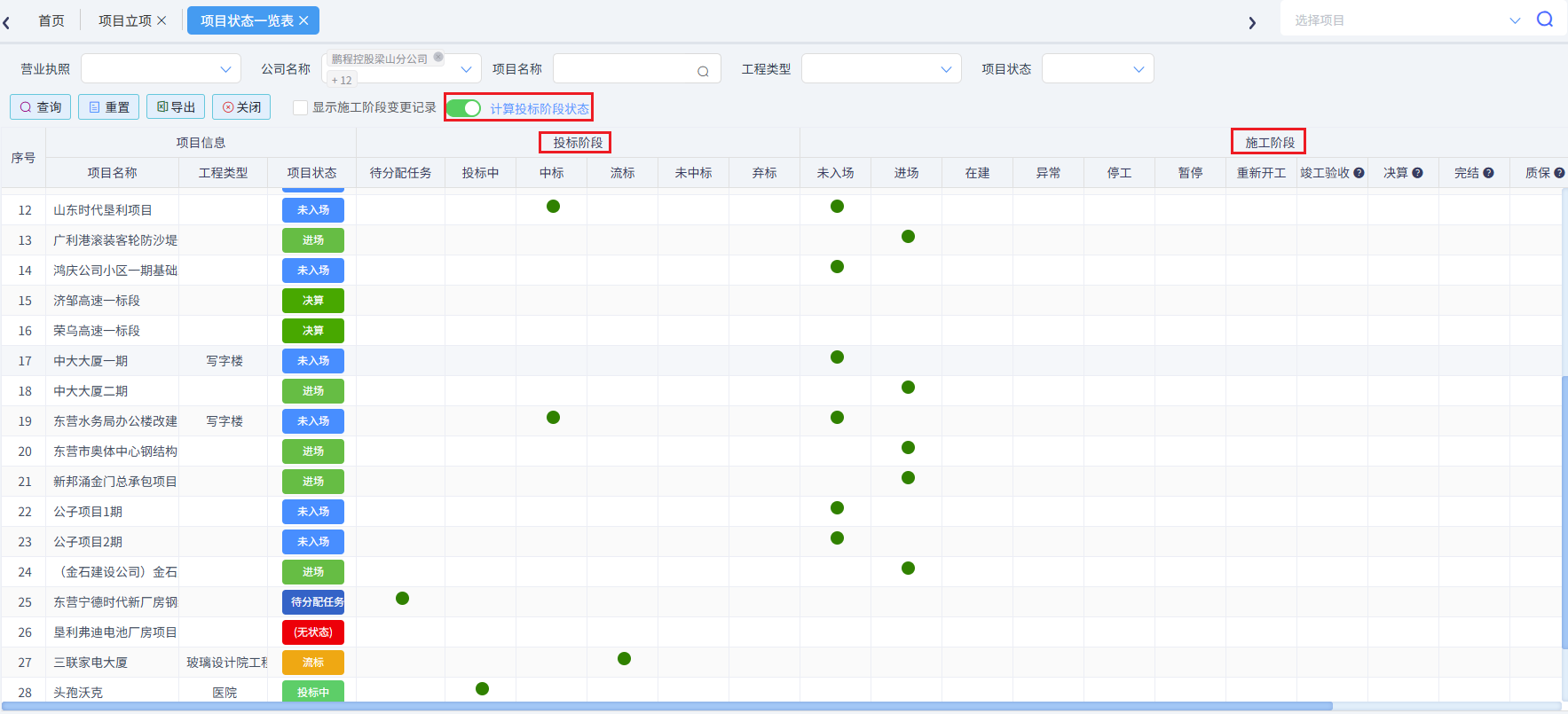 此表展示所有項目的狀態,包括投標階段和施工階段,如下圖所示: