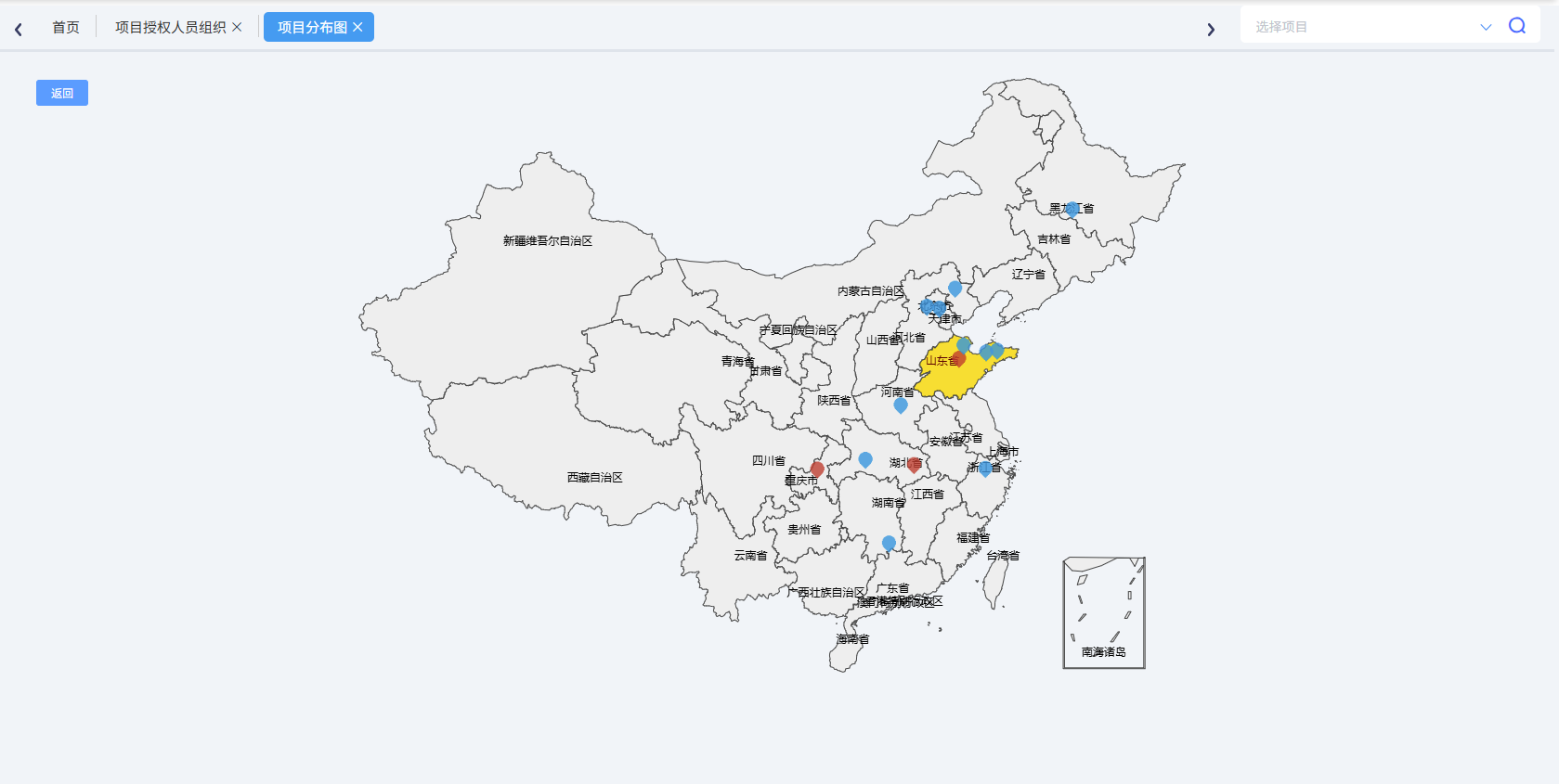 項目立項時設定好項目經緯度,就可以項目分布圖中展示項目位置坐標,如下圖所示: