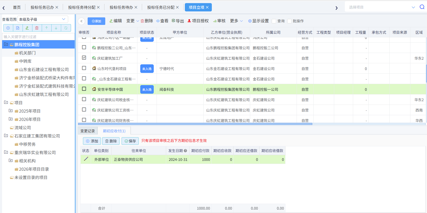 注意項目審核后,期初應收付才生效。