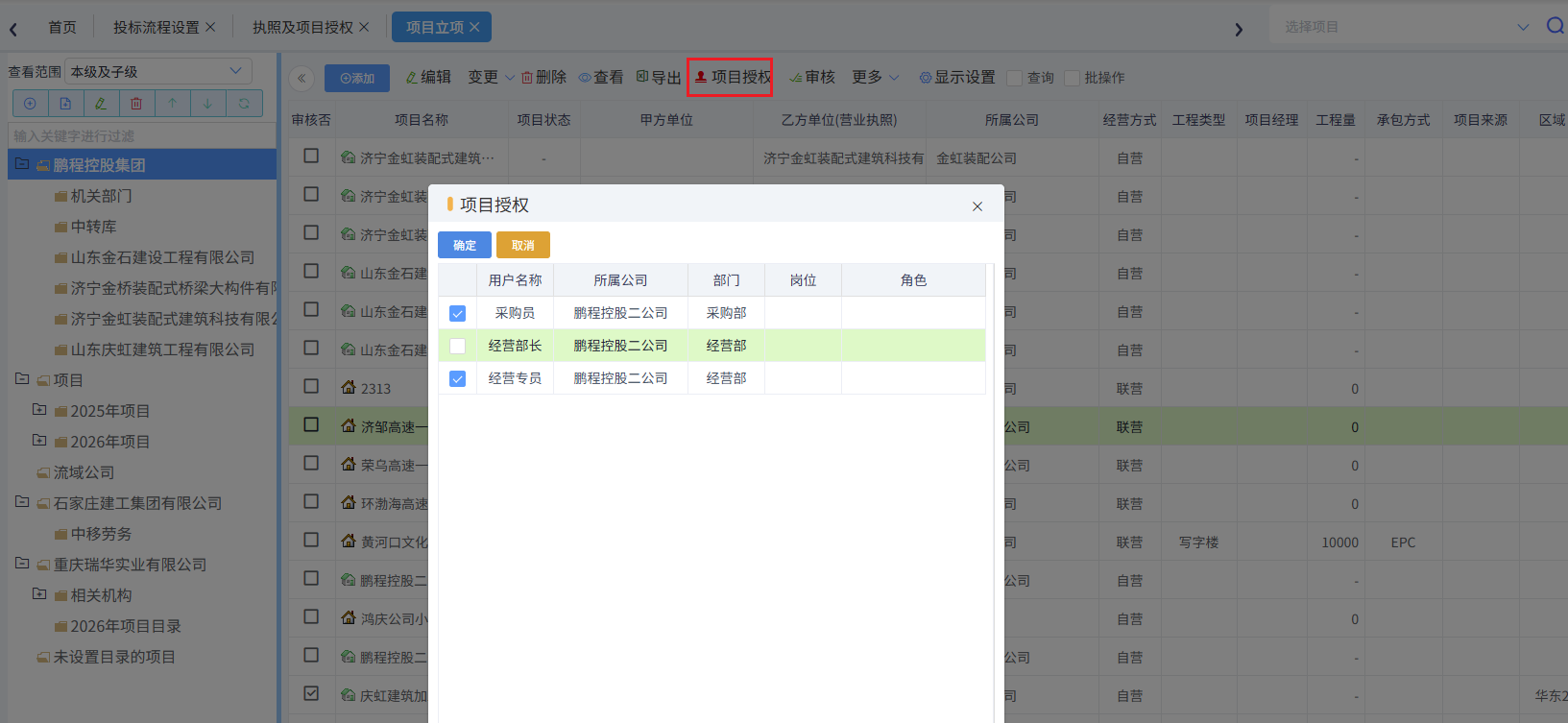 也可以在此界面做項目授權,如下圖所示: