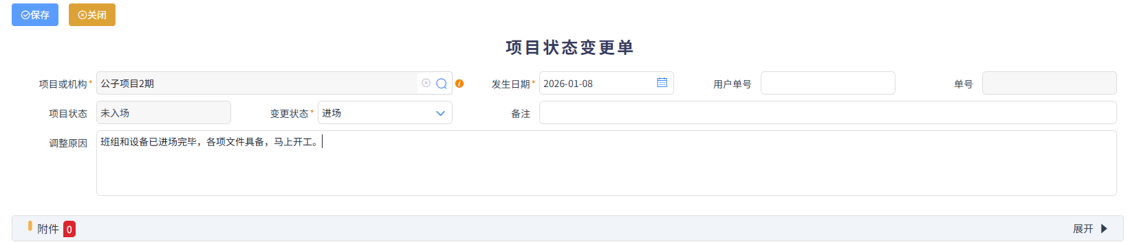 特別注意,只有班組進場登記完成后,材料領用和勞務類等單據才可以正常填寫。