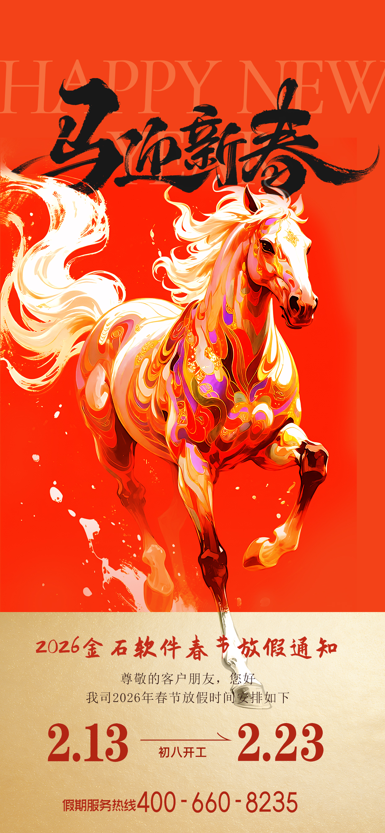 辭舊歲,馬踏祥瑞;迎新春,金石獻禮。值此農歷丙午馬年來臨之際,金石軟件全體員工向您致以最誠摯的節日問候!
