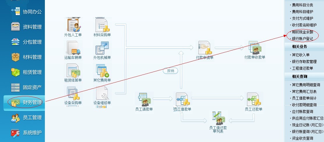 財(cái)務(wù)現(xiàn)金賬和銀行賬的的期初錄入,是在財(cái)務(wù)模塊中的期初現(xiàn)金余額、銀行賬戶登記來(lái)錄入。如下圖: