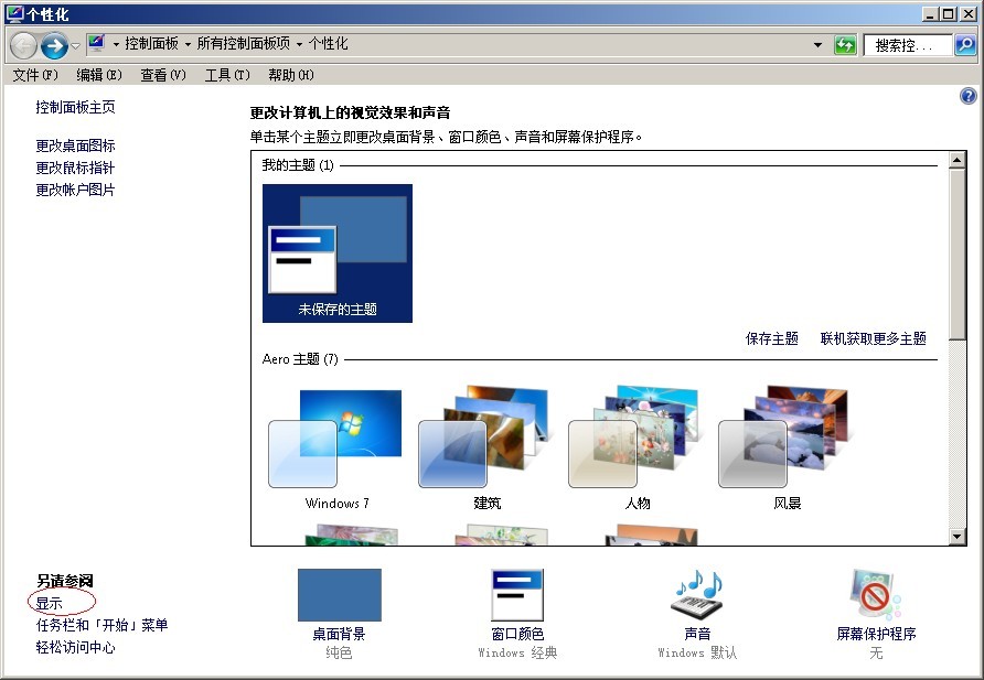 2. 在彈出的個(gè)性化窗口中選擇左下角的【顯示】按鈕